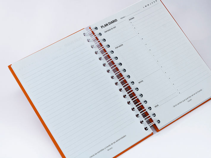 12 planeadores mensuales al principio, dos páginas contiguas para cada mes.